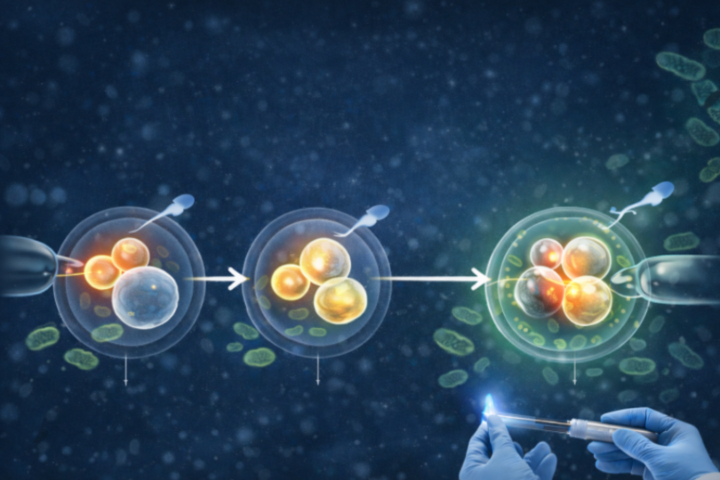 Ainda há pouco tempo isto parecia ficção científica: uma criança com material genético de três pessoas. Hoje é uma tecnologia real que resolve um problema muito específico — a transmissão de doenças genéticas graves.